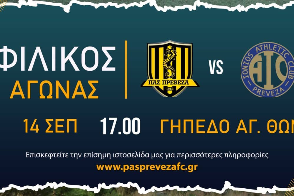 Την ομάδα του Ιόνιου θα αντιμετωπίσει ο ΠΑΣ Πρέβεζα σε φιλικό παιχνίδι που θα πραγαμτοποιηθεί το Σάββατο 14 Σεπτεμβρίου στις 17.00 στο δημοτικό γήπεδο του Αγ. Θωμά.