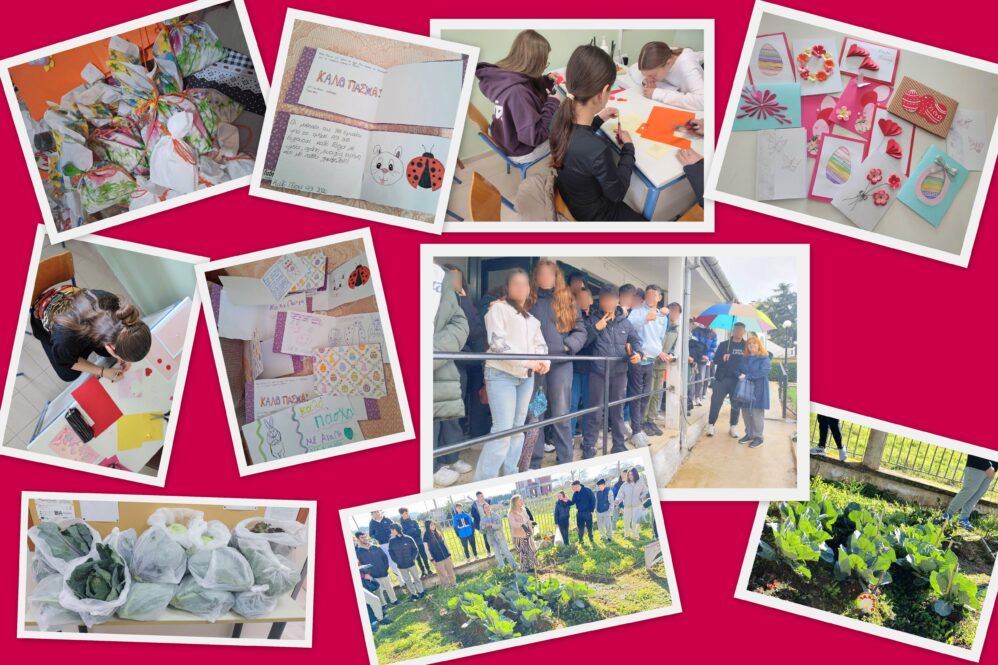 Την Πέμπτη, 2 Απριλίου 2026, μαθητές/τριες των δύο σχολείων με συνοδεία εκπαιδευτικών επισκέφθηκαν το Γηροκομείο της πόλης μας, συνομίλησαν με τους ηλικιωμένους και τους πρόσφεραν εδέσματα και πασχαλινές κάρτες.