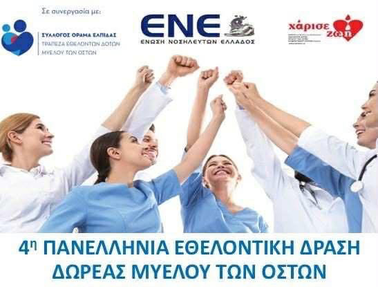 Η Νοσηλευτική Υπηρεσία του Γενικού Νοσοκομείου Πρέβεζας, σε συνεργασία με τον Σύλλογο «Όραμα Ελπίδας», την Ένωση Νοσηλευτών Ελλάδος (ΕΝΕ) και τον Σύλλογο «Χάρισε Ζωή», ανακοινώνει τη συμμετοχή του νοσοκομείου μας στην 4η Πανελλήνια Εθελοντική Δράση Δωρεάς Μυελού των Οστών, με σύνθημα: