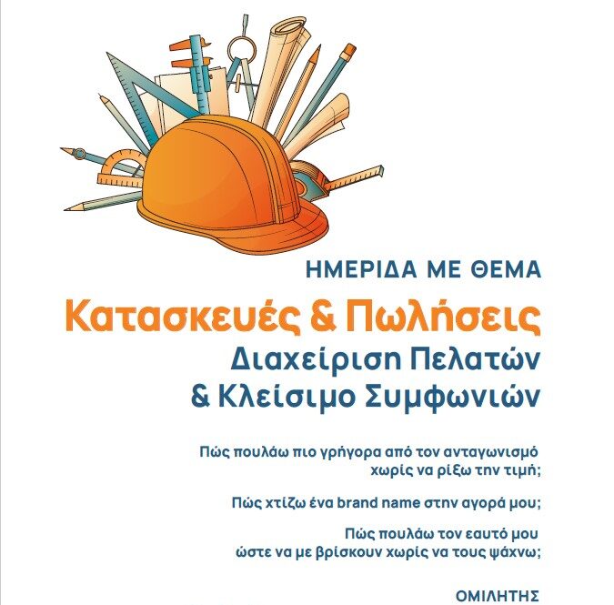 Το Τεχνικό Επιμελητήριο Ελλάδος (Τμήμα Ηπείρου) προσκαλεί τα μέλη του και το ευρύτερο κοινό του κατασκευαστικού κλάδου σε μια εξαιρετικά ενδιαφέρουσα ομιλία με επίκεντρο τη στρατηγική των πωλήσεων στον κατασκευαστικό κλάδο.