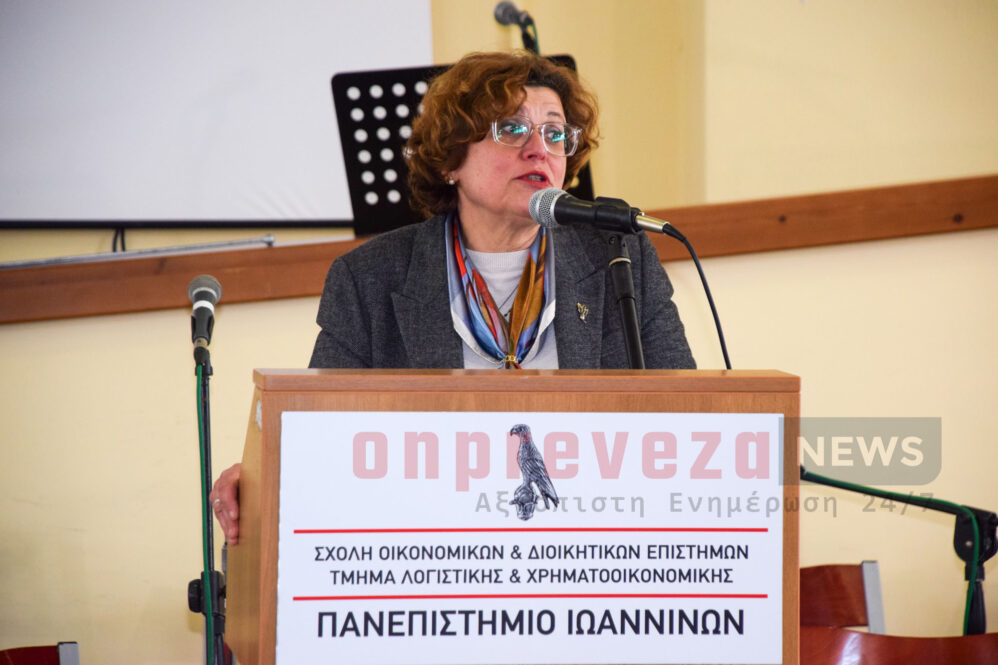 ”Θα ήθελα να απολαύσετε και τους χώρους του Πανεπιστημίου μας οι οποίοι είναι εξαιρετικοί. Αυτή είναι η αίθουσα στην οποία γίνονται και οι ορκωμοσίες και είναι ένας χώρος όπως βλέπετε για τον οποίον το Πανεπιστήμιο είναι περήφανο όπως είναι περήφανο και για το Τμήμα. Και πάντοτε λέμε ότι δεν είναι μόνο για το Τμήμα, γιατί το Τμήμα σήμερα είναι εδώ αύριο μπορεί να είναι στα Γιάννενα. Όμως είναι ένας χώρος ανοιχτός για ακαδημαϊκές και εκπαιδευτικές δραστηριότητες σε όλη την κοινότητα. Σας καλωσορίζουμε λοιπόν εκ μέρους του Πανεπιστημίου στους χώρους μας και ελπίζω και εύχομαι να απολαύσετε τόσο τους χώρους όσο και την Πρέβεζα” είπε μεταξύ άλλων η κ. Μπατιστάτου.
