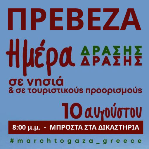 Τοπικά Νέα Πέμπτη 7 Αυγούστου 2025 - 14:24 NOT IN OUR LAND – NOT IN OUR NAME (ΟΧΙ ΣΤΗ ΓΗ ΜΑΣ – ΟΧΙ ΣΤΟ ΟΝΟΜΑ ΜΑΣ) από ΟΜΑΔΑ ΣΥΝΤΑΞΗΣ10 Αυγούστου: Ημέρα Δράσης Σε νησιά και τουριστικούς προορισμούς Ενάντια […]