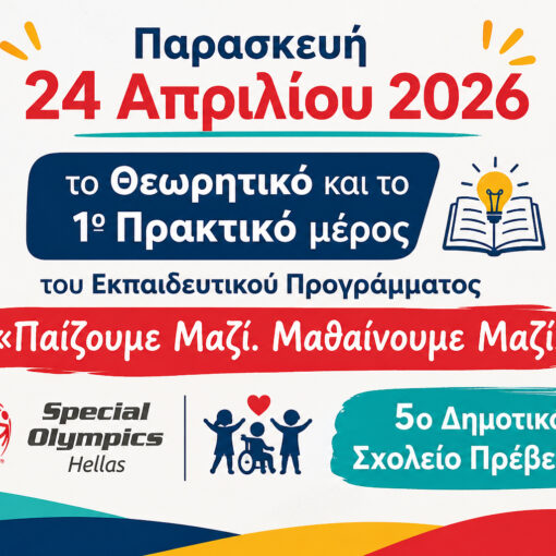 ΠΑΙΔΕΙΑ 5 ώρες ago Εκπαιδευτική Δράση: «Παίζουμε Μαζί. Μαθαίνουμε Μαζί.» των Special Olympics Hellas από ΟΜΑΔΑ ΣΥΝΤΑΞΗΣΜε ιδιαίτερη επιτυχία και έντονο αποτύπωμα συναισθημάτων χαράς, συνεργασίας και […]
