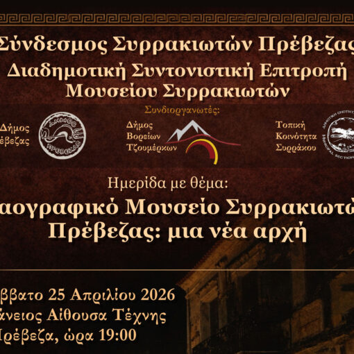 Πολιτισμός 3 ώρες ago Ημερίδα με θέμα το Λαογραφικό Μουσείο Συρρακιωτών Πρέβεζας από ΟΜΑΔΑ ΣΥΝΤΑΞΗΣΟι Δήμοι Πρέβεζας και Βορείων Τζουμέρκων, η Τοπική Κοινότητα Συρράκου, ο Σύνδεσμος […]