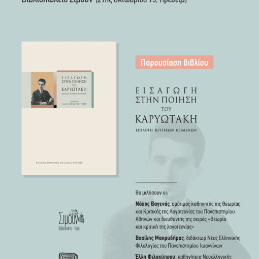 Πολιτισμός Πέμπτη 19 Ιουνίου 2025 - 15:17 Παρουσίαση βιβλίου «Εισαγωγή στην ποίηση του Καρυωτάκη» από ΟΜΑΔΑ ΣΥΝΤΑΞΗΣι Πανεπιστημιακές Εκδόσεις Κρήτης και το βιβλιοπωλείο Σιμούν σας προσκαλούν […]