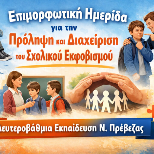ΠΑΙΔΕΙΑ Πέμπτη 26 Φεβρουαρίου 2026 - 14:25 Επιμορφωτική Ημερίδα για την Πρόληψη και Διαχείριση του Σχολικού Εκφοβισμού από ΟΜΑΔΑ ΣΥΝΤΑΞΗΣΗ Διεύθυνση Δευτεροβάθμιας Εκπαίδευσης Πρέβεζας, αναλαμβάνοντας ενεργό ρόλο στη θωράκιση […]
