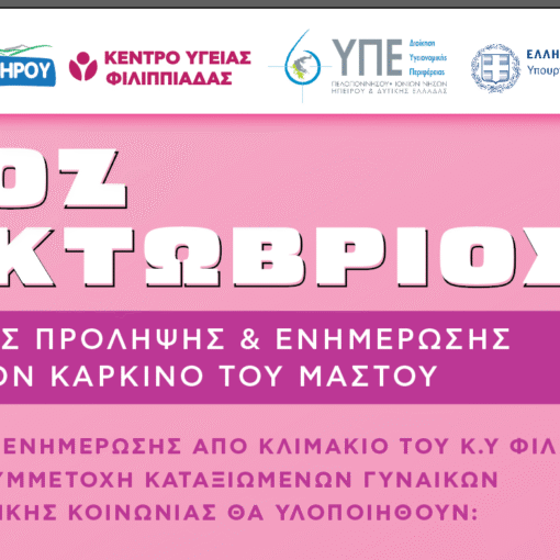Δήμος Ζηρού Δευτέρα 20 Οκτωβρίου 2025 - 11:15 Ο Οκτώβριος έχει καθιερωθεί ως ο μήνας ενημέρωσης και πρόληψης του καρκίνου του μαστού από ΟΜΑΔΑ ΣΥΝΤΑΞΗΣΟ Οκτώβριος είναι ο μήνας που ντύνεται ροζ. Είναι ο […]