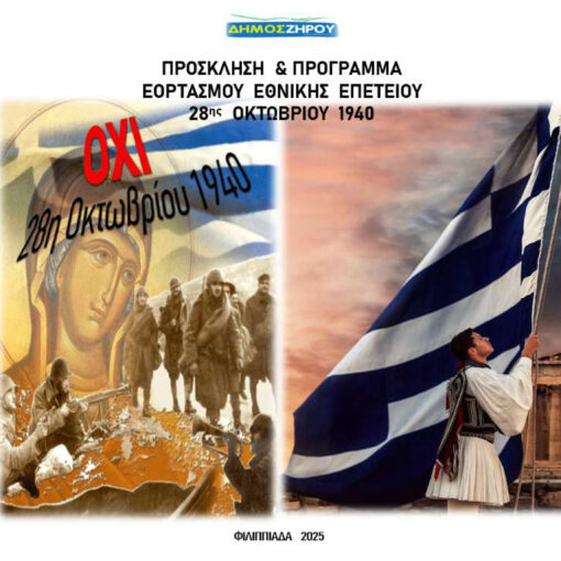 Δήμος Ζηρού Τετάρτη 22 Οκτωβρίου 2025 - 13:40 Δήμος Ζηρού – Εκδηλώσεις Εορτασμού της Εθνικής Επετείου 28ης Οκτωβρίου 1940 από ΟΜΑΔΑ ΣΥΝΤΑΞΗΣΟ Δήμος Ζηρού σας προσκαλεί να τιμήσετε με την παρουσία […]