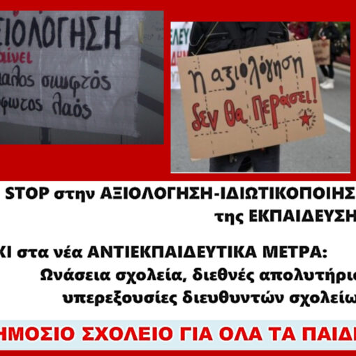 ΠΑΙΔΕΙΑ Τρίτη 21 Ιανουαρίου 2025 - 19:01 Σύλλογος εκπαιδευτικών Π.Ε Ν. Πρέβεζας – Αλληλεγγύη σε διωκόμενη συναδέλφισσα από ΟΜΑΔΑ ΣΥΝΤΑΞΗΣΠαράσταση Διαμαρτυρίας Παρασκευή 24 Γενάρη στις 2 μ.μ στη Διεύθυνση […]