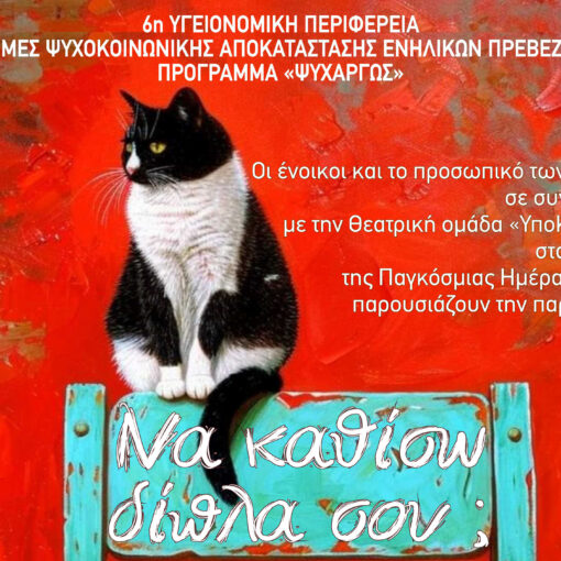 ΥΓΕΙΑ 12 ώρες ago Θεατρική Παράσταση «Να καθίσω δίπλα σου;» από τις Δομές Ψυχοκοινωνικής Αποκατάστασης Πρέβεζας από ΟΜΑΔΑ ΣΥΝΤΑΞΗΣΟι Δομές Ψυχοκοινωνικής Αποκατάστασης Ενηλίκων Πρέβεζας της 6ης Υγειονομικής Περιφέρειας, […]